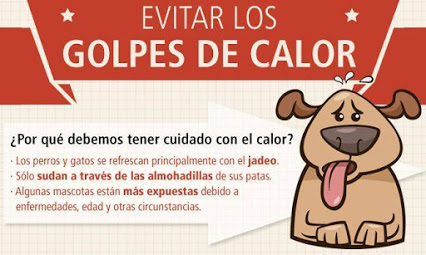 Con la llegada de las altas temperaturas, el golpe de calor es uno de los principales problemas al que se ven sometidas nuestras mascotas, ya que tanto perros como gatos son mucho más sensibles al calor que los humanos. Éstos no pueden regular su temperatura corporal mediante el sudor, debido a que no tienen glándulas sudoríparas repartidas por el cuerpo. Los perros eliminan el calor a través del jadeo y del sudor que expulsan por las almohadillas de los pies y por las zonas aisladas con poco pelo, como puede ser el vientre. Los gatos intentan mantener una temperatura estable lamiéndose y manteniendo el pelo liso, de este modo, la saliva depositada en el pelo, al evaporarse, disminuye su calor corporal.